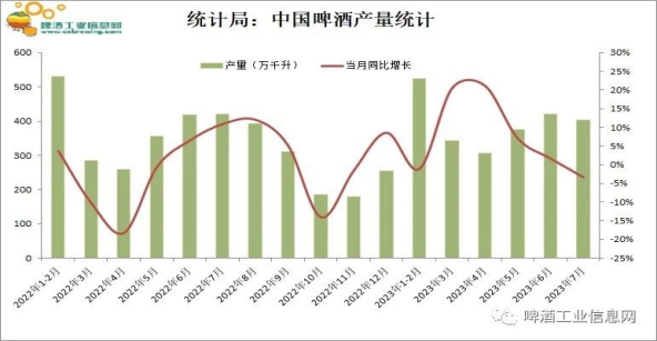 2023年7月中國啤酒產(chǎn)量同比下降3.4%