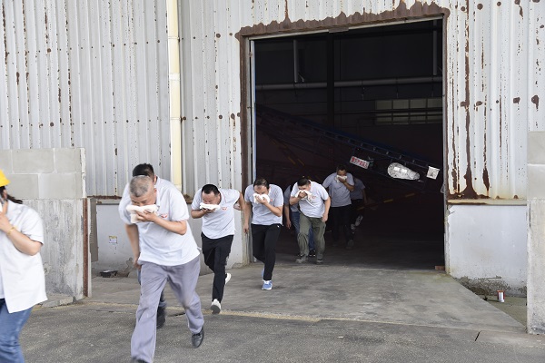 現(xiàn)場演練部分為消防滅火演練,公司義務消防隊員參與,一人接駁水帶與墻式消防栓栓扣,兩人接駁兩條水帶后一人接駁水帶與水槍栓扣,開啟水源閥,以水流消滅空曠處火源。公司義務消防隊員分工明確,在火災面前臨危不亂,有序開展現(xiàn)場警戒,安全疏散、扶持傷員撤離,快速滅火,轉移物資,整個過程緊張有序、實用性強。