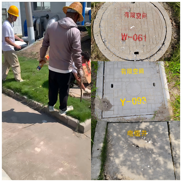 高溫肆虐,他們始終緊繃安全弦,佩戴整齊防護用品,手握噴漆工具沉穩(wěn)細致地工作,汗水浸透工裝,專注卻毫厘不差;醒目的紅黃標識,一道又一道,在井蓋周邊漸次延伸開來。上百塊井蓋被噴繪出清晰標識,如同在廠區(qū)織起一張堅韌的安全防護網(wǎng)。